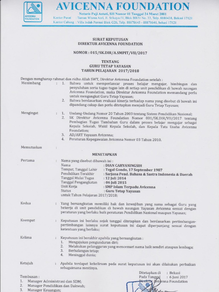 Contoh sk pengangkatan kepala sekolahmadrasah swasta adalah contoh surat keputusan dariyang dibuat oleh ketua yayasan untuk mengangkat kepala sekolah sditsmpitsmasmk atau kepala madrasah mimtsma berstatus swasta yang diselenggarakan pada suatu yayasan pendidikan. Dinas pendidikan, pemkot/pemkab, departemen agama, dll) bagi sekolah negeri dan pns :: Berkas ini mudah mudahan berguna sebagai referensi ditujukan untuk guru pendidik dan tenaga kependidikan di madrasah yang berada dibawah naungan yayasan. Lembaga paud atau pendidikan anak usia dini termasuk lembaga yang sudah merajalela di indonesia khususnya di pulau jawa. Sk pengangkatan ini merupakan surat keputusan sk yang sangat penting dan dikeluarkan oleh kepala sekolah sebagai seorang guru honorer tentu yang sangat penting adalah memiliki sk baik dalam bentuk sk kepala sekolah maupun sk yayasan yang telah di sesuaikan dengan undang undang no 27 tahun 2003 sesuai dengan juknis bos 2016 2017. Mengunggah surat keputusan atau surat keterangan dari yayasan yang menunjukkan bahwa sekolah berada dibawah naungan yayasan. Terimakasih kak shela operatoryayasan terimakasih kak shela operatoryayasan opy daftaropy. 4 contoh surat mutasi guru. 20200816 dalam post ini admin akan memberikan contoh sk operator yayasan yang mana digunakan untuk input pendidik dan tenaga kependidikan ptk pada sekolah swasta yang berada pada naungan yayasan tersebut. Hal ini agar madrasah swasta mempunyai legalitas hukum yang kuat. Unggah surat keputusan (sk) yayasan atau surat keterangan yang menyebutkan bahwa sekolah berada dalam naungan yayasan bersangkutan. Sk pendirian sekolah dari yayasan tarif pendirian yayasan tarif pendirian yayasan 2017 persyaratan pendirian yayasan pdf undang undang pendirian yayasan pendirian yayasan online prosedur pendirian yayasan menurut uu no 28 tahun 2004 sertifikat pendirian yayasan prasyarat mendirikan yayasan mesjid pada pokoknya ada 3 tingkatan dalam pengerjaan pendirian yayasan. Keputusan mentri pendidikan nasional nomor 044u2002 tentang dewan pendidikan dan komite sekolah.