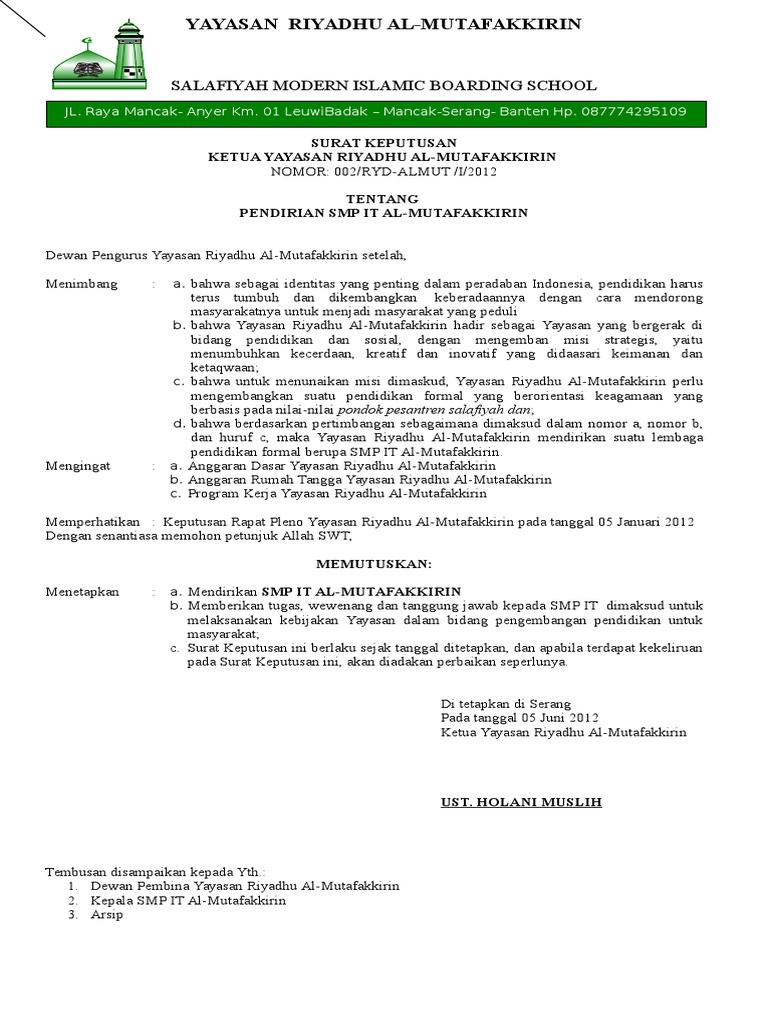 0% 0% found this document not useful, mark this document as not useful. Surat keputusan contoh sk honor yayasan format contoh sk honor yayasan format keputusan ketua yayasan pendidikan islam al fata. Hal ini agar madrasah swasta mempunyai legalitas hukum yang kuat. 20200816 dalam post ini admin akan memberikan contoh sk operator yayasan yang mana digunakan untuk input pendidik dan tenaga kependidikan ptk pada sekolah swasta yang berada pada naungan yayasan tersebut. Surat permohonan yayasan bakti insan mandiri, dusun munggur, desa a.