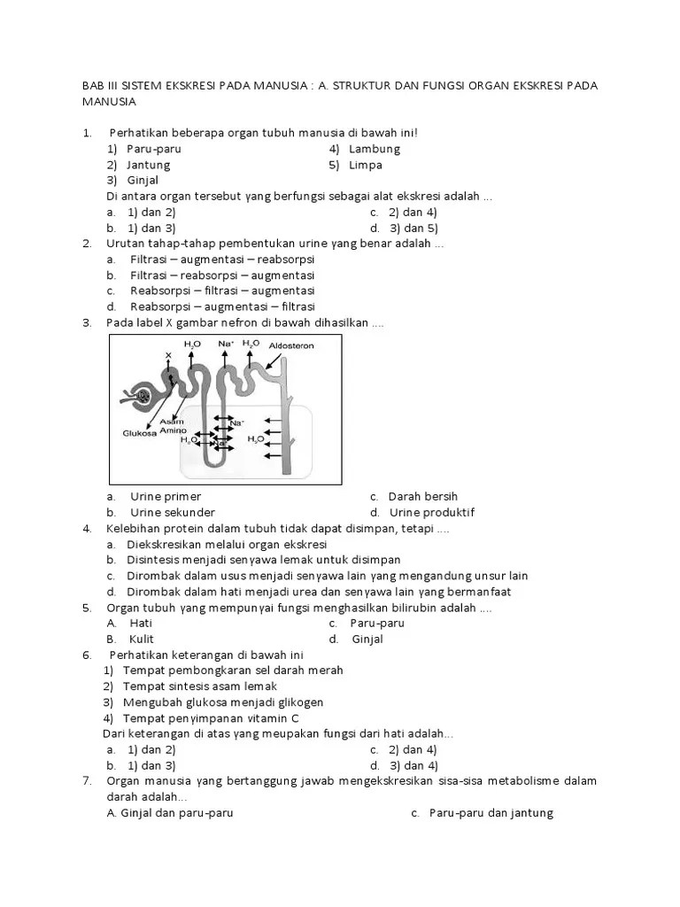 Soal biologi kelas 11 sma tentang sistem eksresi manusia a. Nah, berikut ini disajikan contoh soal ulangan harian pada konsep sistem ekskresi pada manusia di kelas ix smp/mts. Pililah salah satu jawaban (a, b, c, atau d yang anda anggap benar! Jawablah pertanyaan pada soal pilihan ganda berikut dengan . Suatu proses atau fungsi yang berkaitan erat dengan sistem ekskresi khususnya dengan jumlah air yang dibuang melalui .